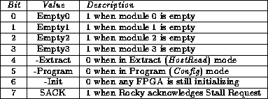 An I/O port read from any address in the range 300-30F results in an 8-bit Bullwinkle Status byte, containing the values shown in Table 4.1.