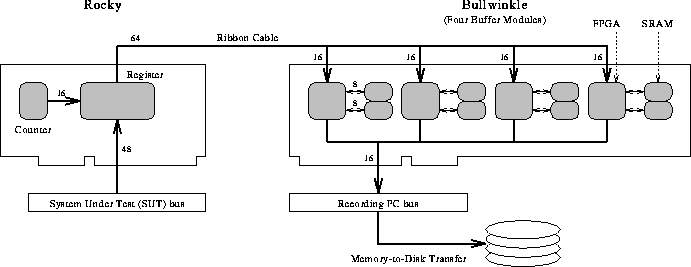 In order to minimize the number of times the processor must be stalled, the system must be able to move all the addresses to be recorded into buffer memory as fast as the processor can generate them. The data path in Figure 2.1 can be thought of as a pipeline, meaning new information can be latched from the bus while the last information is still on its way to the buffers. The propagation time of each stage of the pipeline must be smaller than the minimum time between memory references by the CPU. Stall requests are generated by Bullwinkle when the buffers reach a certain ``high-water'' mark, and are propagated back to Rocky which interrupts the CPU.