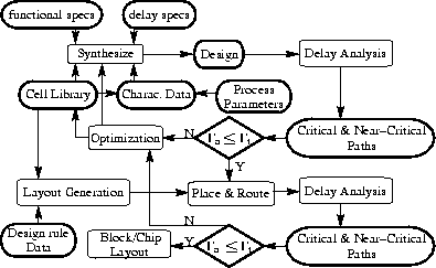 New, evolving technologies and the extreme requirements in application results place considerable burden on our design methodologies. For a given technology, the application specific library with application specific CAD tools is not only costly but also time consuming. It is extremely important to be able to obtain maximum benefit from a newly emerged technology as soon as possible. NO TAG shows a typical design methodology that may be used to design integrated circuits with catalog based standard cell libraries and the associated data. NO TAG shows the enhancements to the existing design methodology that incorporates