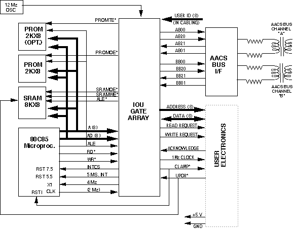 The ASIC itself is known as the Attitude and Articulation Control Subsystem Remote Terminal Input/Output Unit or IOU, for short. As part of the control and data interface, the IOU supports the spacecraft subsystem responsible for steering and dynamic configuration control.