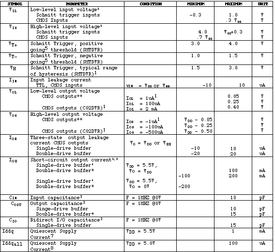 ** If IOL and IOH exceed the max. limits for CMOS outputs, VOL and VOH will vary according to the sink or source current vs. VOL and VOH curve supplied by The Vendor.