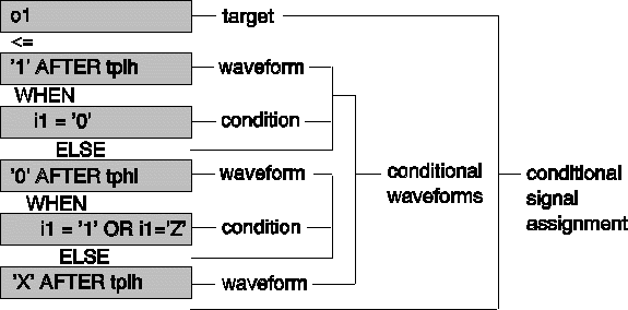 - o1 <= '1' AFTER tplh WHEN i1 = '0' ELSE