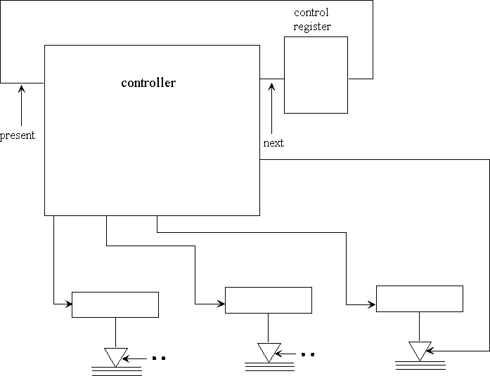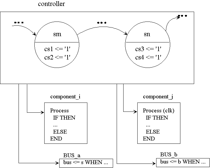 In each state issue control signals. No complex state programs. Specify Bussing.