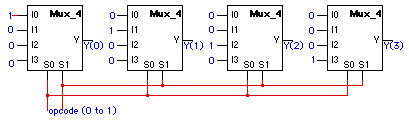 Repeating this for the other three stages and collecting redundant inverters from opcode(0) and opcode(1) gives us this final optimized circuit.