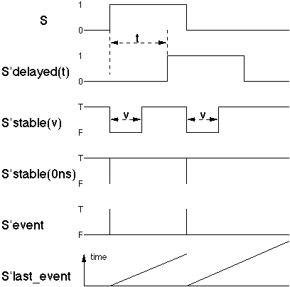 Used for checking setup and hold times. If T is the setup time, this will be true at the clocking time. It imposes a fairly high overhead, and should usually be avoided. See the use of S'LAST_EVENT below.