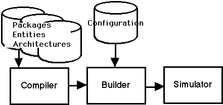 library ieee; use ieee.std_logic_1164.all; entity mem_board is port ( data : inout std_logic_vector; address: in std_logic_vector; nOE, nWR : in std_logic ); end mem_board; architecture S1 of mem_board is signal selectbits : std_logic_vector(0 to 1); signal csel : std_logic_vector(0 to 3); signal mem_adrs : std_logic_vector(0 to 17); component ram port ( d : inout std_logic; adrs : in std_logic_vector; CS,nOE,nWR : in std_logic); end component; begin assert selectbits'length + mem_adrs'length = address'length report "Address lines to/inside Memboard do not match." severity ERROR; D: for i in data'range generate A: for j in csel'range generate Uxy: ram port map (data(i), mem_adrs, csel(j), nOE, nWR); end generate; -- for j end generate; -- for i end S1; configuration FGD of mem_board is for S1 for all: ram use entity Fujitsu.Generic_Ram(Dynamic); end for; end for; end FGD;use work.all; configuration struct1 of TLC_TEST is for Test -- where the outermost entity is TLC_Test -- and Test is an architecture implementing it. for Controller : TLC use entity work.Traffic_Light_Controller (Structure1); -- instance Controller of component TLC in -- TLC_TEST(Test) is to have this entity in it. for Structure1 -- specifying the timer section of this arch. for Timer_Struct : Timer_Section use entity work.Timer (Behavior); end for; end for; end for; end for; end struct1;