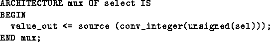 But multiplexers can also be introduced with other constructs, where it is less obvious. For example, choosing a particular input source with an index will normally generate a multiplexer (figure 2). These multiplexers grow with the number of input signals and signal width.