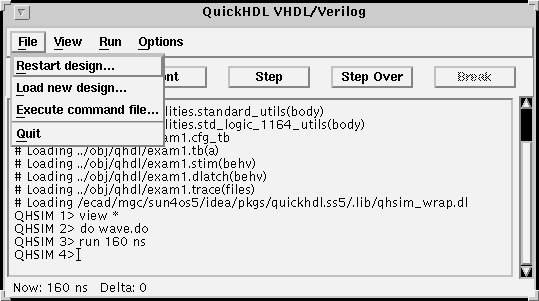 qhsim -c -lib ../obj/qhdl/exam1 cfg_tb -do "run 160 ns;quit"
