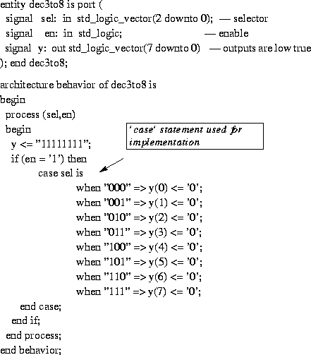 - Example: In dec3to8.vhd do not assign 'y' the default value of B"11111111". If en is 0,