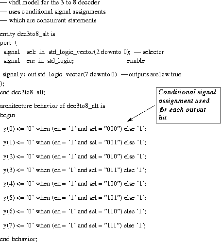 - Both concurrent and sequential statements can be used to specify combination logic