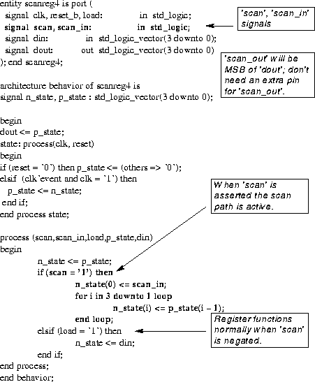 - The 'for-loop' VHDL construct can be used to create a scan-path in your design.