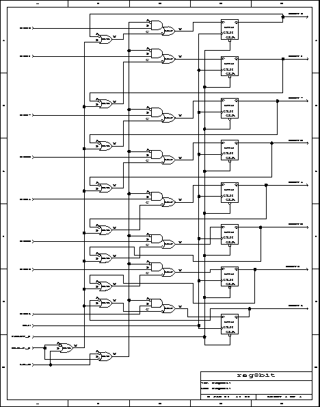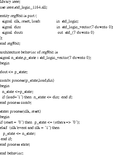 - The state process defines a storage element which is 8-bits wide, rising edge triggered, and