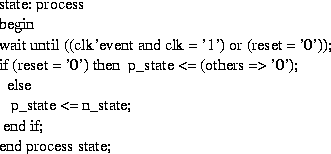 state: process ( sensitivity list -- clock, reset, next_state inputs)