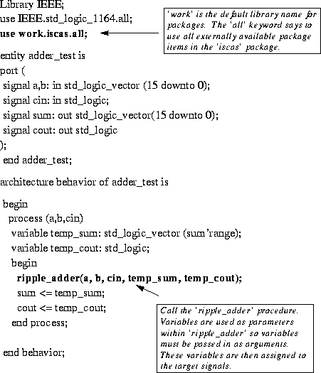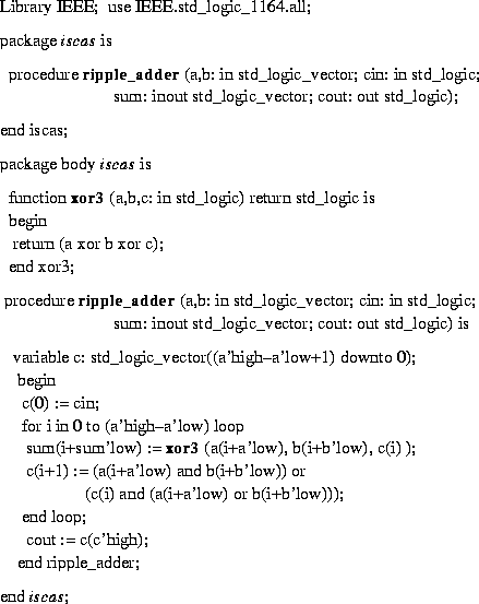 procedure ripple_adder (a,b: in std_logic_vector; cin: in std_logic;