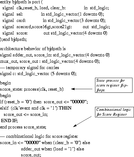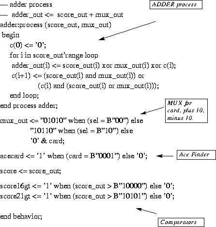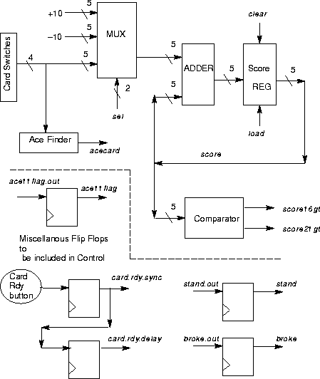 - Comparator logic for checking is score is greater than 16 or greater than 21.