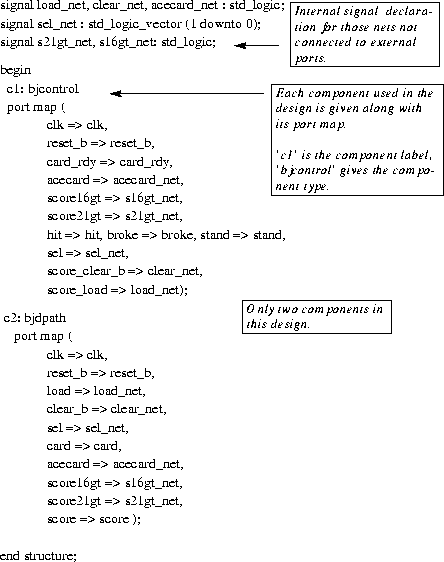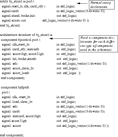 - You do not have to use a schematic to connect VHDL blocks. You can write a structural