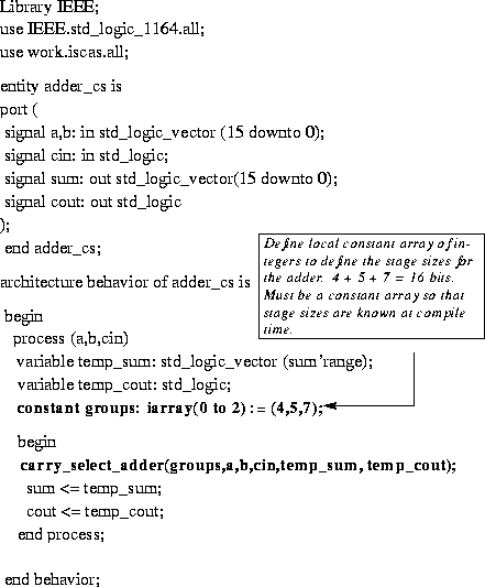 in an integer array to the carry_select_adder procedure; the integer array will be define the