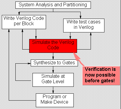 In practice it is common to spend 70-80% of the ASIC design cycle writing and simulating Verilog at and above the register transfer level, and 20-30% of the time synthesizing and verifying the gates.