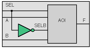 G2: process (SEL, A, SELB, B) begin F <= not ((SEL and A) or (SELB and B)); end process;
