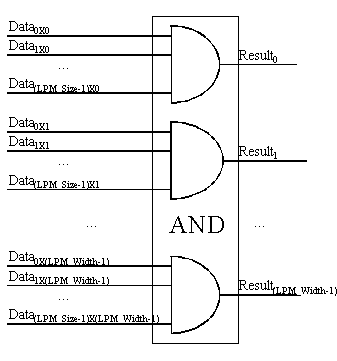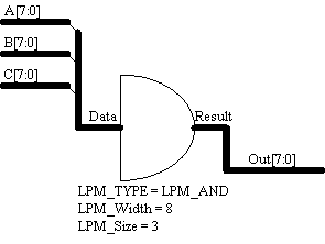 an LPM_AND with an LPM_Width = 8 and an LPM_Size = 3. The LPM_Width