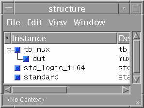 The design’s hierarchy can be traversed and inspected with the Structure window. The same information is contained in the workspace window under tab sim.