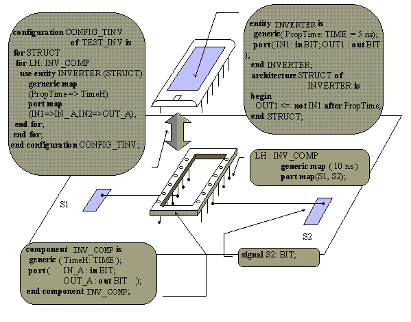 statement LH, the design entity INVERTER is assigned to INV_COMP component.