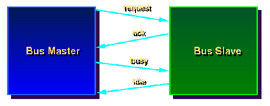 - Tokens on the bus have one of four values: idle, request, ack, busy