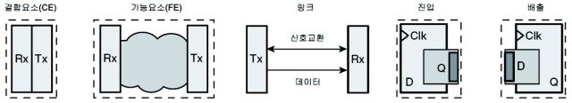 picoPIPE는 결합요소(Connection Element, CE), 기능요소(Functional Element, FE), 경계요소(Boundary Element, BE), 링크 등의 기본 구성요소들로 구성된다(그림 2참조).