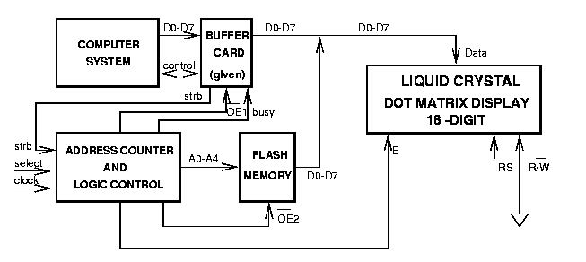 Your task is to design and implement a logic circuit that controls two data sources and a display. Both data sources are sharing the same display unit, which is a 16-character, liquid-crystal dot-matrix display (LCD). The data sources for this particular experiment are a parallel port and a non-volatile memory. A user will be able to select which data source is to control the display. Data in the computer can be modified by the user, however, the data in the memory will be written before-hand. Writing to the Flash memory is not a part of this experiment.