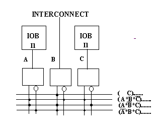 All internal connections are composed of metal segments with programmable switching points to implement the desired routing. An abundance of different routing resources is provided to acheive efficient automated routing. The number of routing channels is scaled to the size of the array; i.e. it increases with the array size. The CLB inputs and outputs are distributed on all four sides of the block, providing additional routing flexibilty (Figure 7).