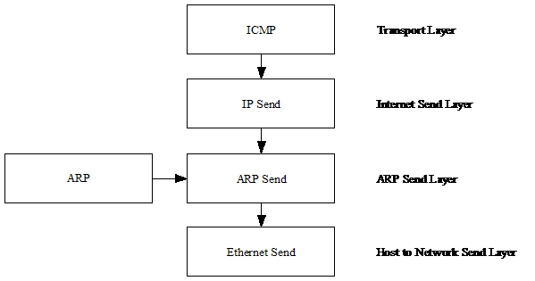 called the ARP layer, Ethernet layer and Internet layer respectively (this