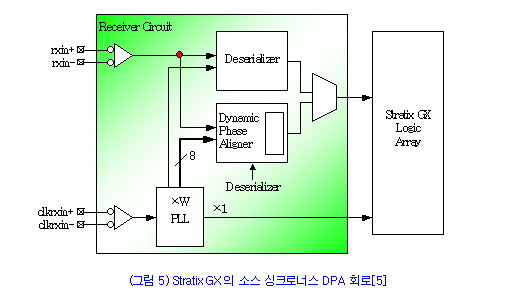 Stratix GX µð¹ÙÀ̽º¿¡¼ ÁÖ¸ñÇÒ ³»¿ëÀ¸·Î ¼Ò½º ½ÌÅ©·Î³Ê½º ä³Î¿¡ DPA(Dynamic Phase Alignment) ±â´ÉÀÌ´Ù. DPA´Â 10-GbE XSBI, SFI-4, SPI-4 µî °°Àº °í¼Óº´·Ä ÀÎÅÍÆäÀ̽º¿¡¼ 1Gpbs±îÁö Ŭ·Ï°ú µ¥ÀÌÅÍÀÇ µ¿±âȸ¦ ¸ÂÃß¾î ÁÖ´Â Àü¿ëȸ·Î·Î ÃÖ´ë 45°³±îÁö Áö¿øÇÑ´Ù.