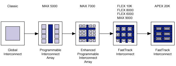 ÀÌÈÄ 1983³â¿¡ ¾ËÅ×¶ó°¡ EPROMÀ» ±â¹ÝÀ¸·Î ÇÑ EPLD (Erasable Programmable Logic Device) ¸¦ °³¹ßÇÔÀ¸·Î½á Àڿܼ±°ú Àü±âÀû ½ÅÈ£¸¦ ÀÌ¿ëÇØ ¾²°í, Áö¿ì±â°¡ °¡´ÉÇÑ ÇÁ·Î±×·¡¸Óºí µð¹ÙÀ̽ºÀÎ ClassicÀ̶ó´Â Á¦Ç°À» ¼±º¸¿´´Âµ¥ À̸¦ ÅëÇØ Áö±ÝÀÇ CPLD (Complex Programmable Logic Device) ½ÃÀåÀÌ º»°ÝÈ µÇ¾ú´Ù. ´ç½Ã ¹ÝµµÃ¼ Ĩ À§¿¡ À¯¸®Ã¢ÀÌ ´Þ·ÁÀÖ´ø Á¦Ç°µéÀÌ ¹Ù·Î EPROMÀ» »ç¿ëÇØ ÇÁ·Î±×·¡¹ÖÀ» Çß´ø PLD µð¹ÙÀ̽ºµéÀÌ´Ù.